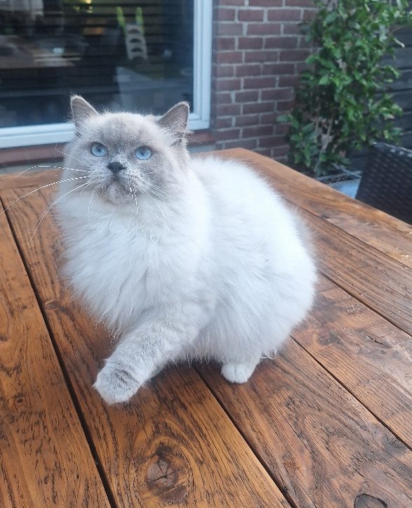 Maple is een blue mitted gestereliseerde poes en bij ons geboren op 11-08-2024. Na haar verhuizing is ze terug gekomen naar ons en wij zijn voor haar op zoek naar een gouden mandje. Maple is een poesje met een verhaal en daarom zullen wij ook extra sellectief zijn met het vinden van een huisje voor haar. Maple is een ongeloofelijk lieve poes en erg op de mens gericht. Ze heeft een erg zacht karrakterje en heeft graag gezelschap om haar heen. Ze houdt van knuffelen maar weet erg goed wat ze wil. Maple leeft in de groep met mijn andere katten waar ze graag mee speelt maar Maple is een poes die haarzelf niet graag laat ondersneeuwen en maakt graag de dienst uit. Maple is in het bezit van een afstammingsbewijs, haar ouders zijn beide getest op hcm, pkd en fiv/felv.(alle testen zijn in te zien) haar mama is inmiddels verhuisd maar papa is nog bij ons te zien. Maple verhuisd met een herplaatsercontract/garantie, een zak overgangsvoer en een leuk (kitten)pakket. Heeft u nog vragen of wilt u een keer kennis komen maken met Maple mail dan gerust. dakelalavi@gmail.com